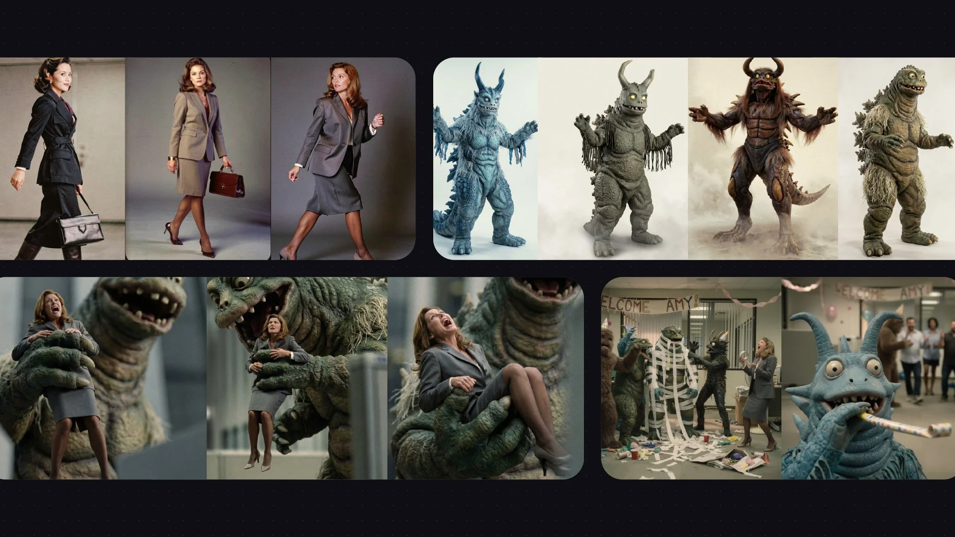 Visually, we leaned into a 70s-80s creature-feature aesthetic with a practical-effects feel to steer away from the typical AI look - rubber suits, simple lighting, grounded performances, slightly muted tones. Something tactile and familiar.